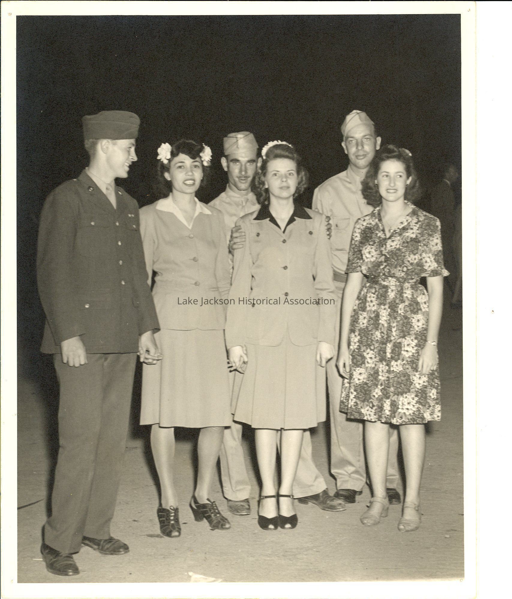 A black and white photo of soldiers and ladies.Collection