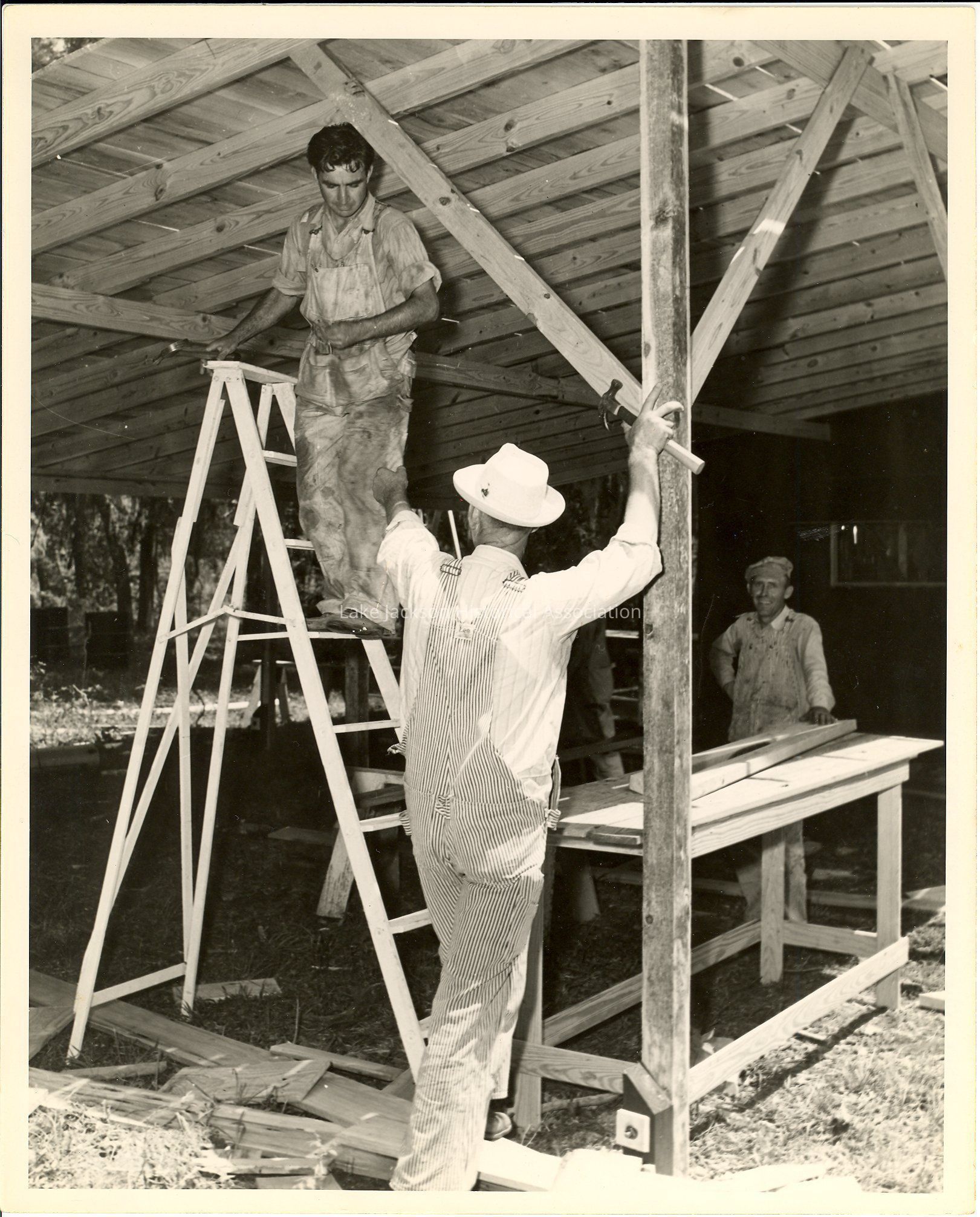 1 8 x 10 black and white photo of boy scout carpenters at work