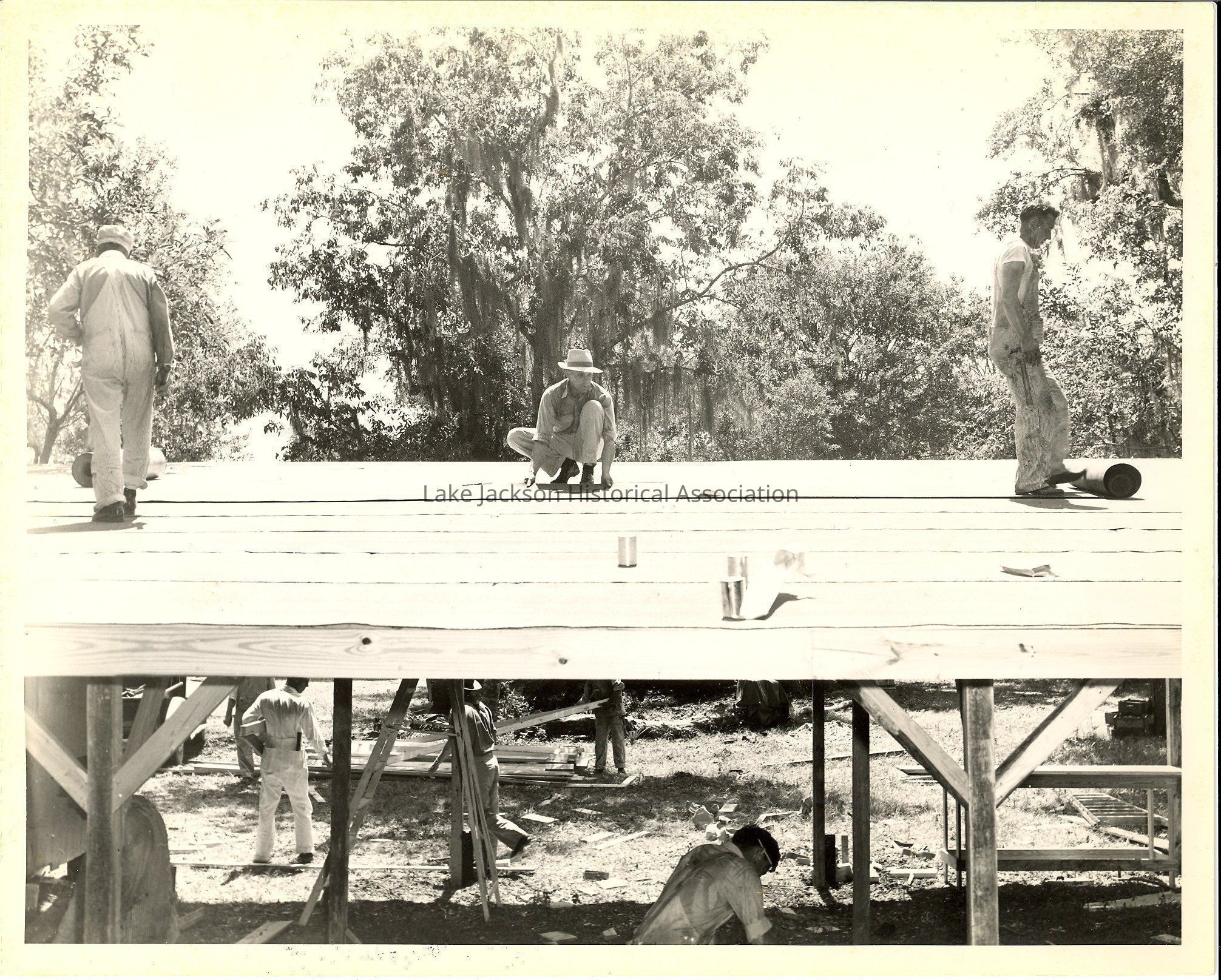 8 x 10 black and white photo of scouts putting tar paper on a roofCollection