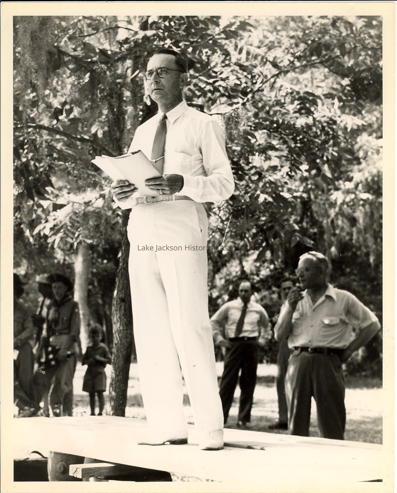 1 black and white photo of officials making speach at opening ceremoniesCollection