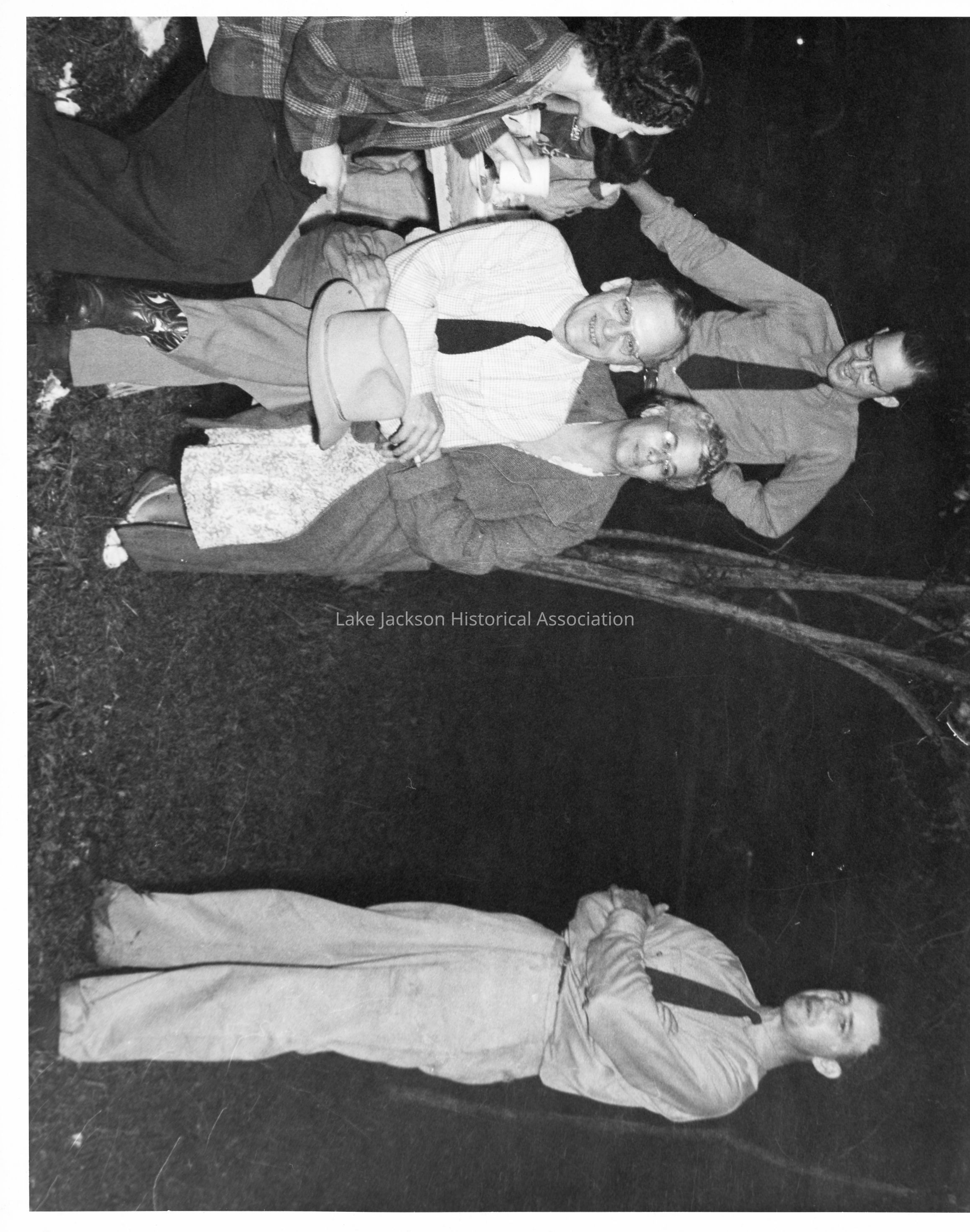 A photo of Dr. Beutel and others at a barbeque at the Lake in Dow Park. Belle Beutel on left.Collection