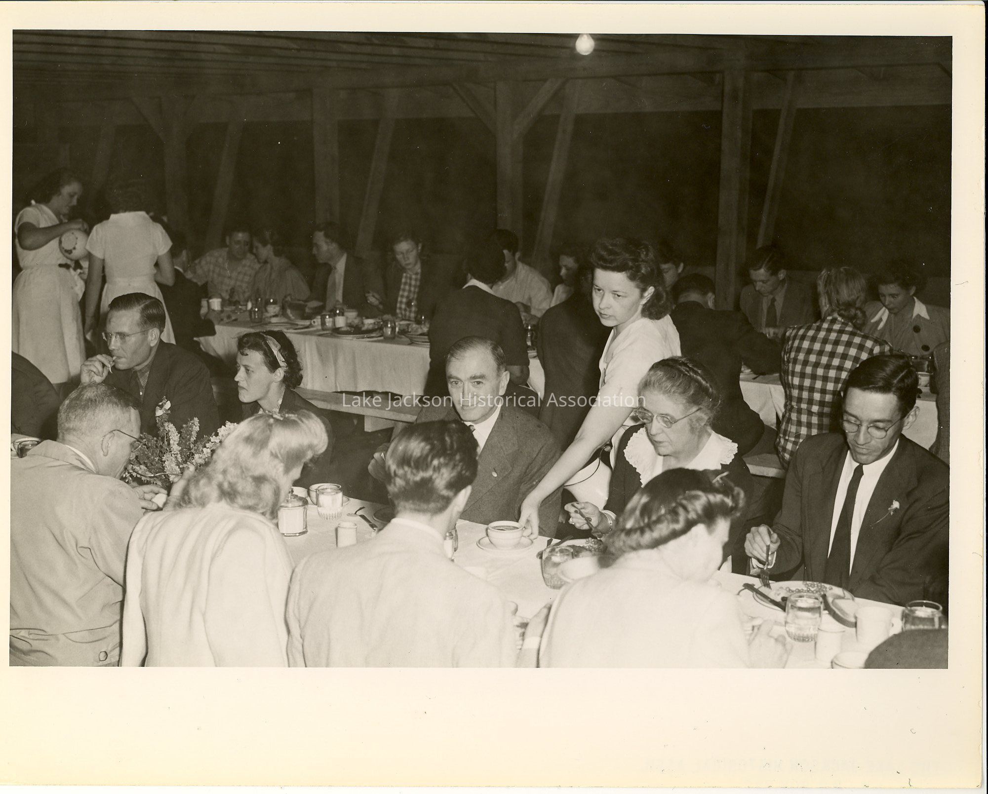 A black and white photo of sales conference between Texas Division and Sales Department from Midland, Michigan at the Dow Park Pavilion.Collection