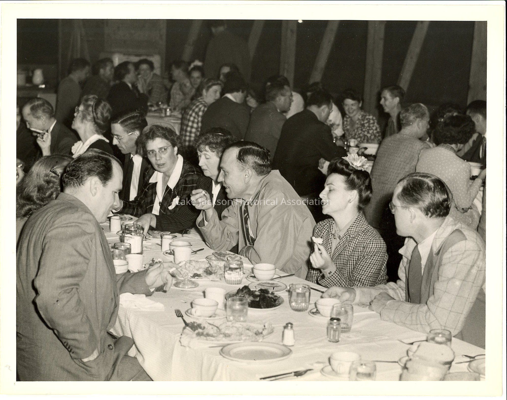 A black and white photo of sales conference between Texas Division and Sales Department from Midland, Michigan at the Dow Park Pavilion.Collection