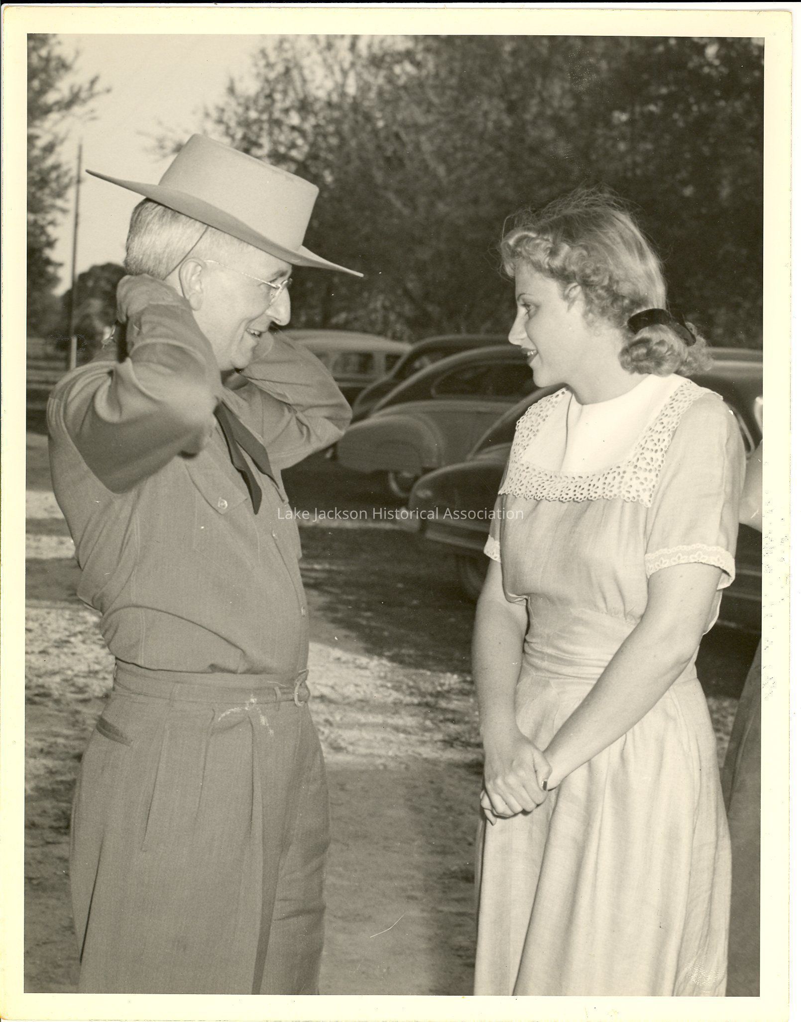 A black and white photo of a gathering at Dr. Beutel's home in Lake Jackson. Guests include personnel from Dow Midland, Michigan and Dow Texas Division. Photo includes Willard Dow and Gretchen Bryan.Collection