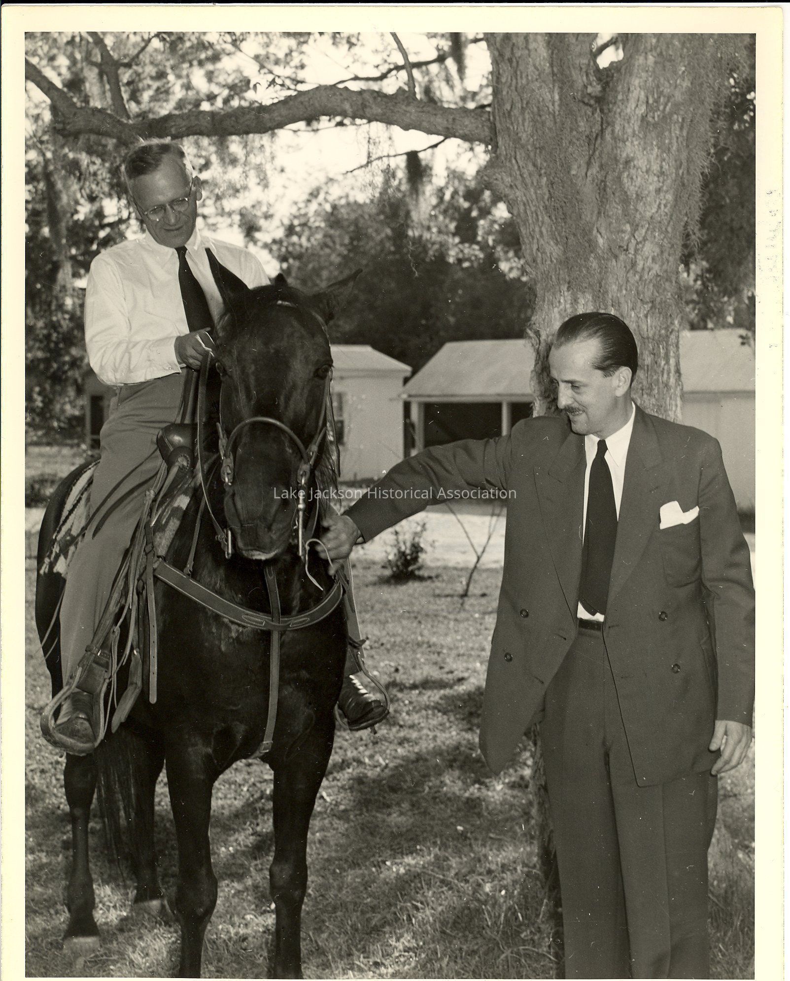 A black and white photo of a gathering at Dr. Beutel's home in Lake Jackson. Guests include personnel from Dow Midland, Michigan and Dow Texas Division. Photo includes Dr. Beutel.Collection