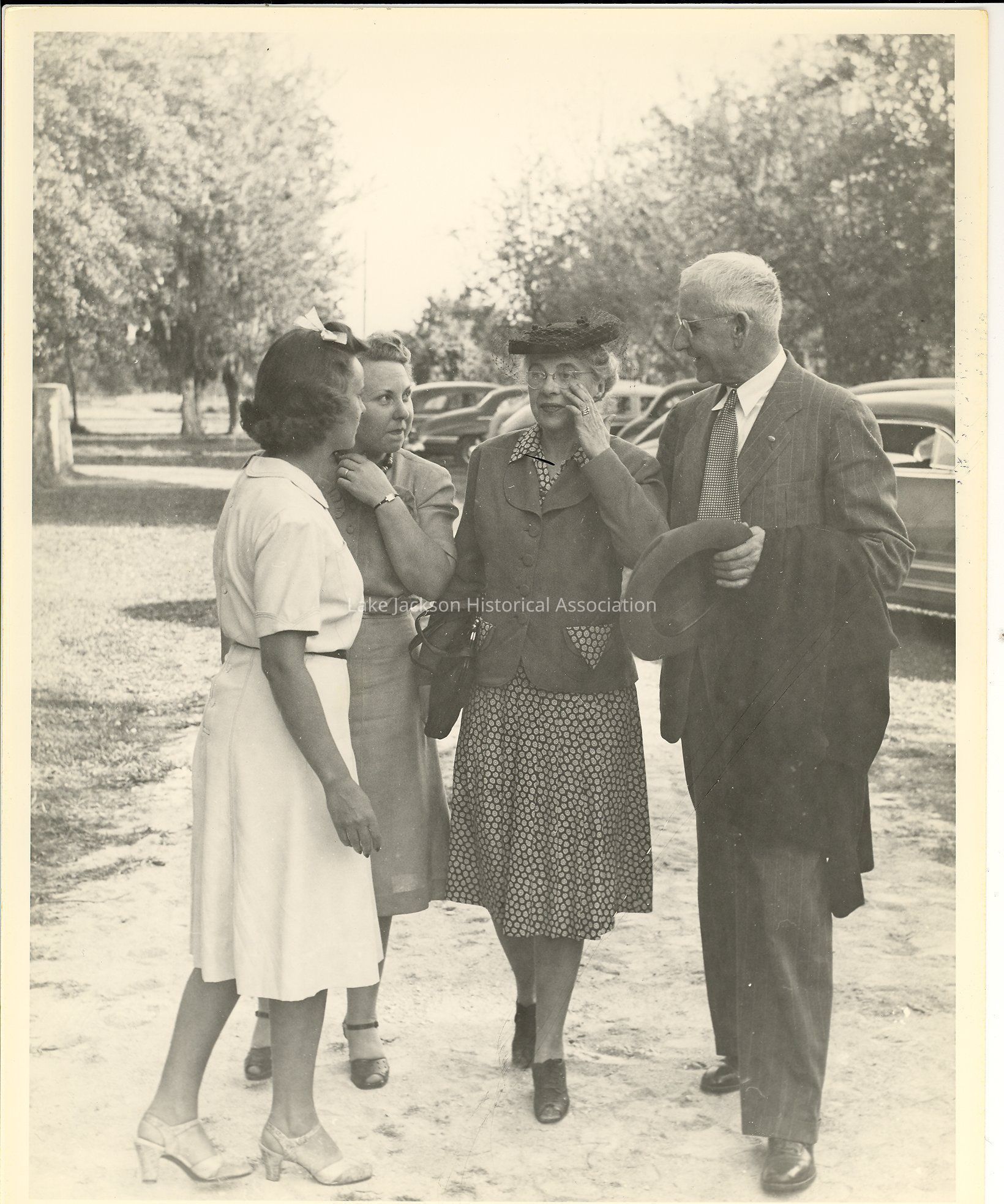 A black and white photo of a gathering at Dr. Beutel's home in Lake Jackson. Guests include personnel from Dow Midland, Michigan and Dow Texas Division. Photo includes Pat Beutel and Dr. and Mrs. Barstow.Collection