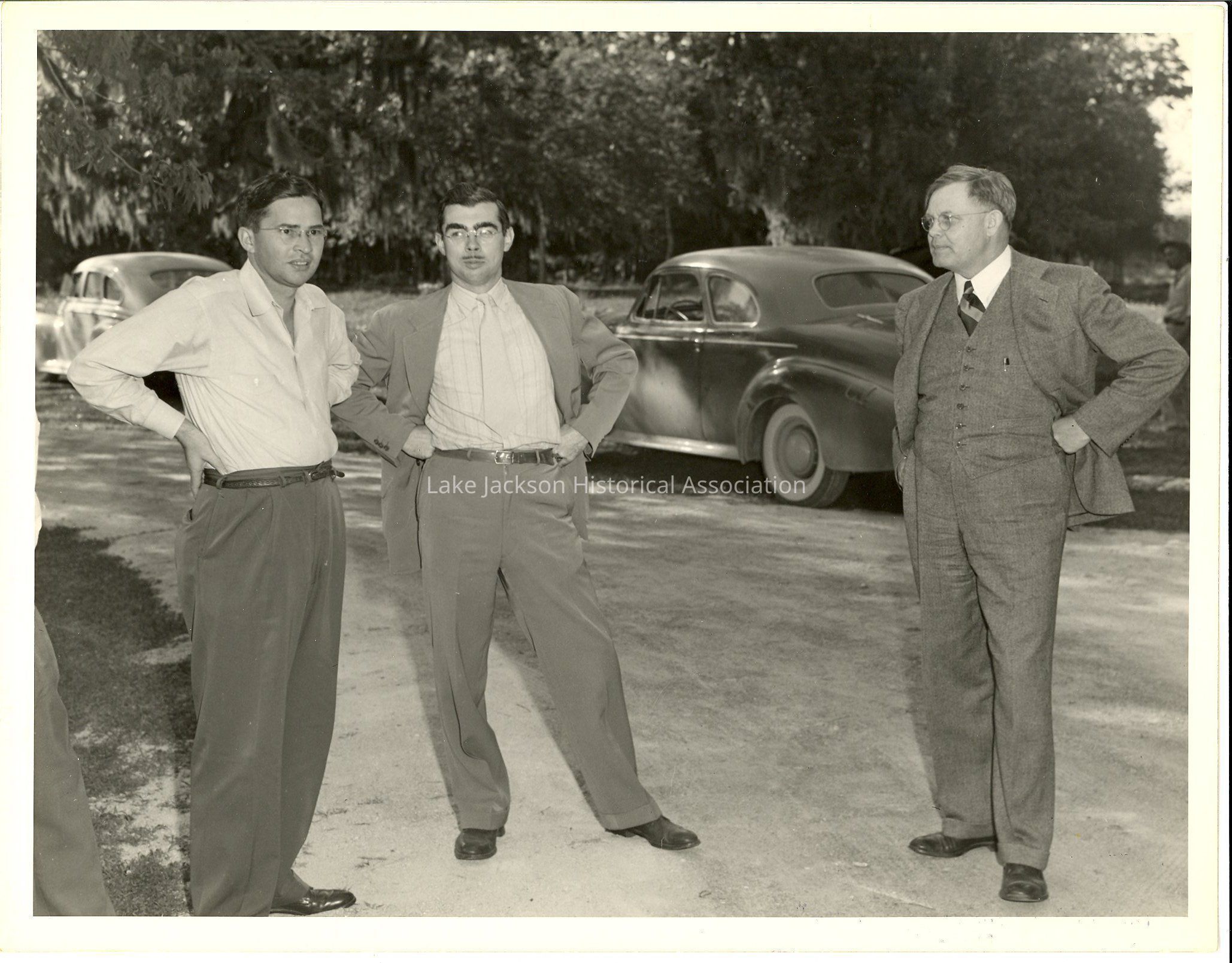 A black and white photo of a gathering at Dr. Beutel's home in Lake Jackson. Guests include personnel from Dow Midland, Michigan and Dow Texas Division. Photo includes Mark Putnam.Collection