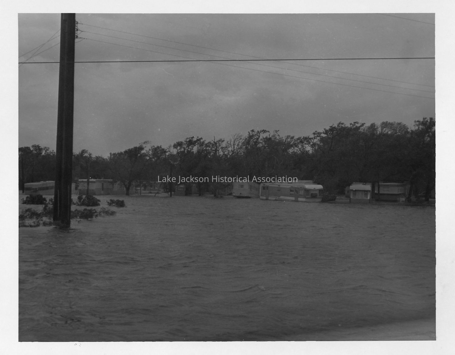 Black and white photo of trailer homes after hurricane CarlaCollection