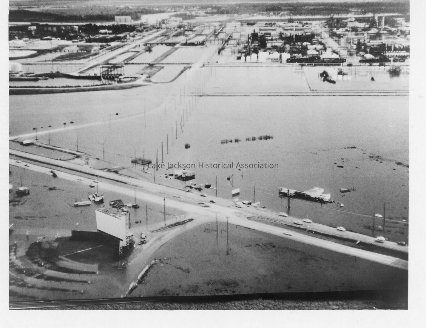 Black and white photo of plant B- 288 (is a double lane highway in foreground) foreground across the road from Bodiddles.Collection