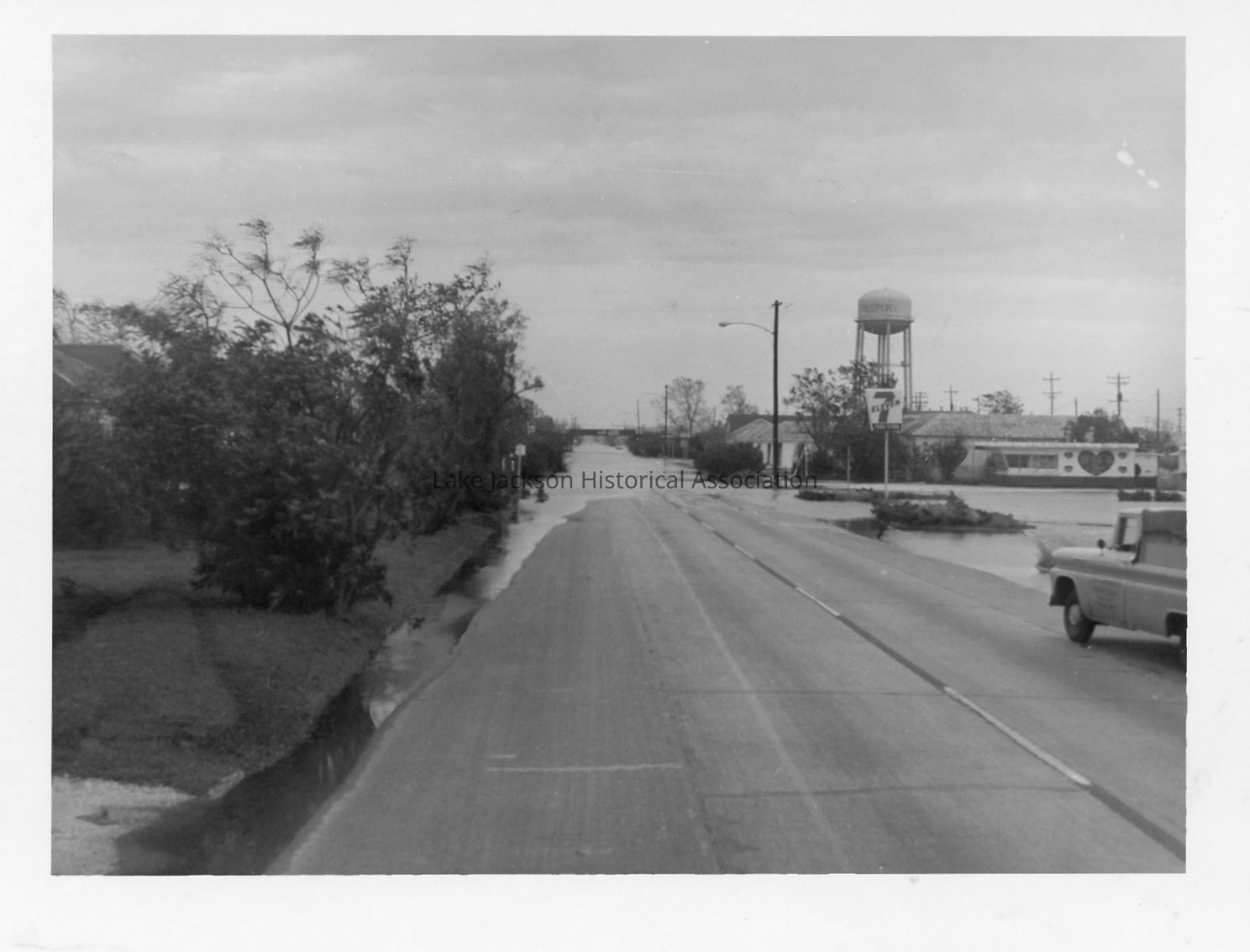 Black and white photo of Main Street in Freeport, Texas.Collection