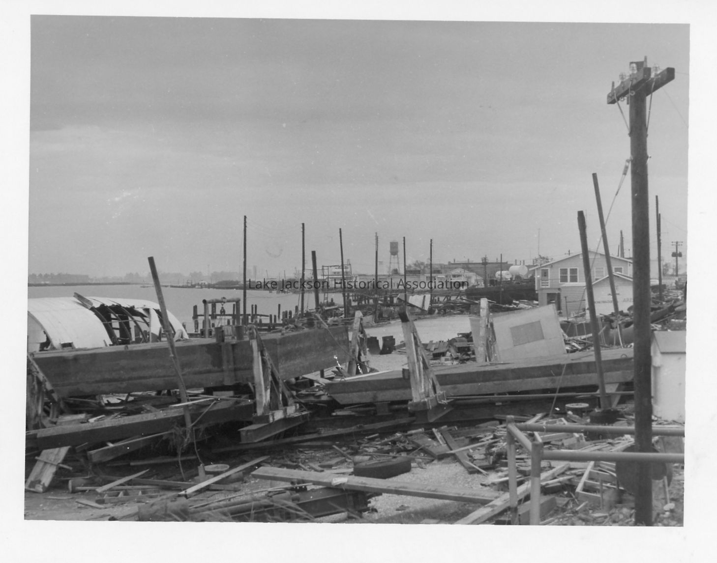 Black and white photo of the aftermath of hurricane Carla (fishing boats)Collection