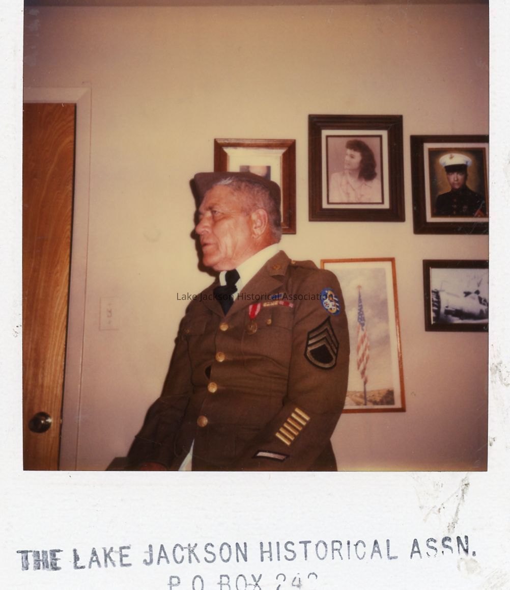 Colored picture of Jack Cherry in WWII uniform. (photo of wife on wall in background) Jack was 64 years of age.Collection