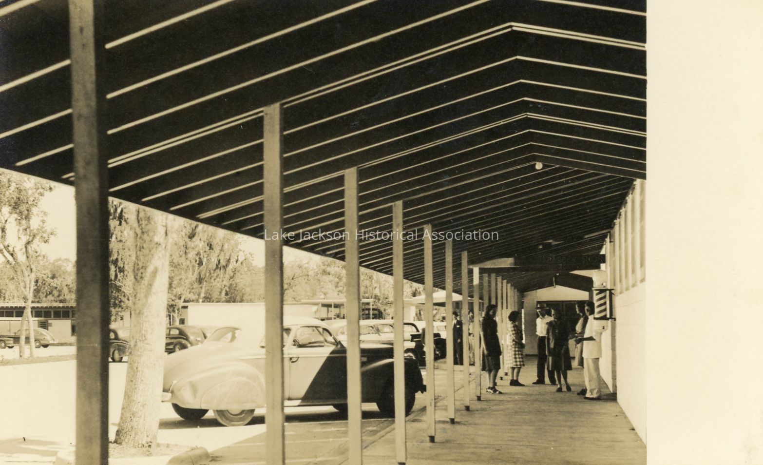A postcard of a scene of South Parking Place. Mr. Vaughan, the barber, is standing outside the Barbershop.Collection