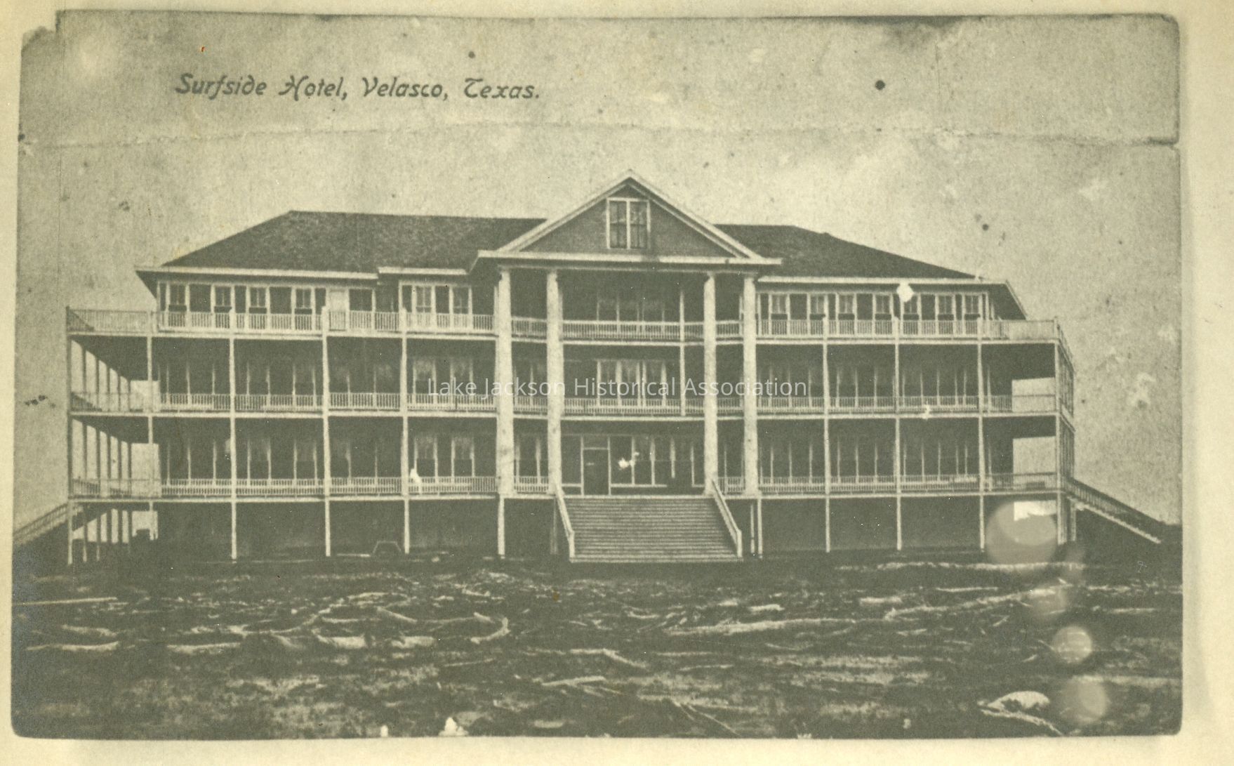 Black and white photo copy of postcard of Surfside Hotel at Velasco, Texas.Collection