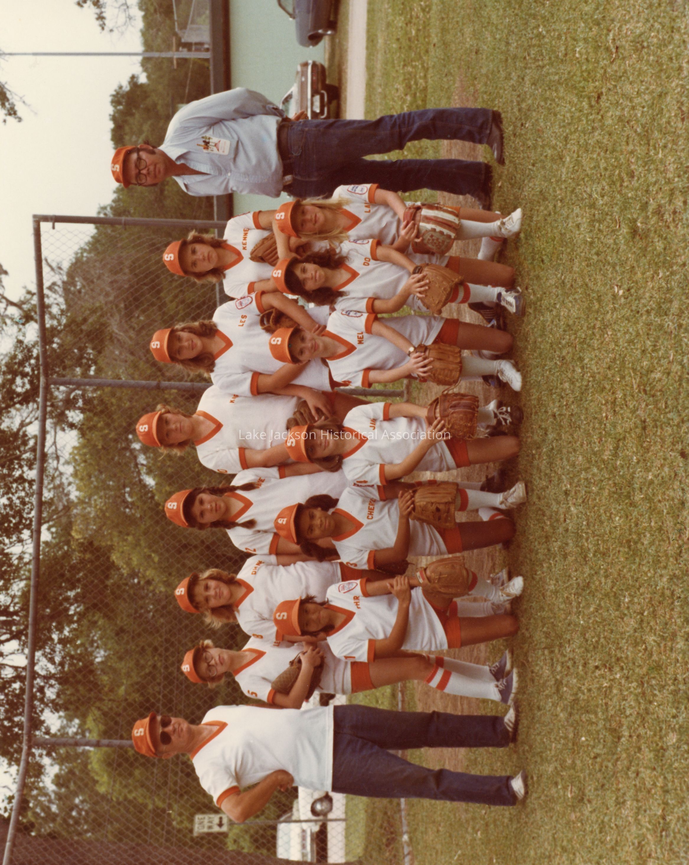 Photo of girls' softball team "The Saints" in 1976. Managers are Norman Lease and K. Rhodes.Collection