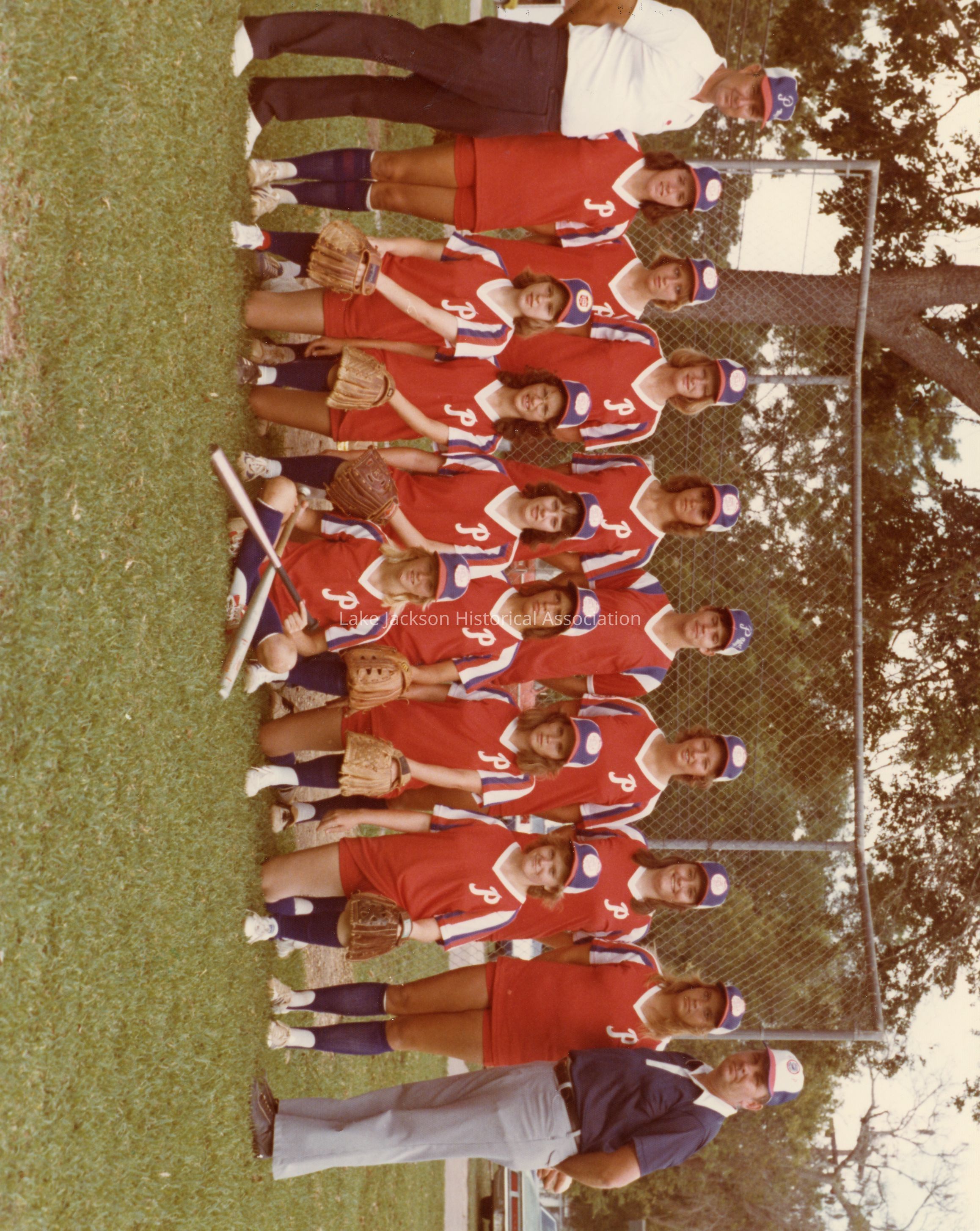 Photo of girls' softball team in 1976 called the P.G.S.A. All Stars. Managers are McNeil and Shuttersworth.Collection