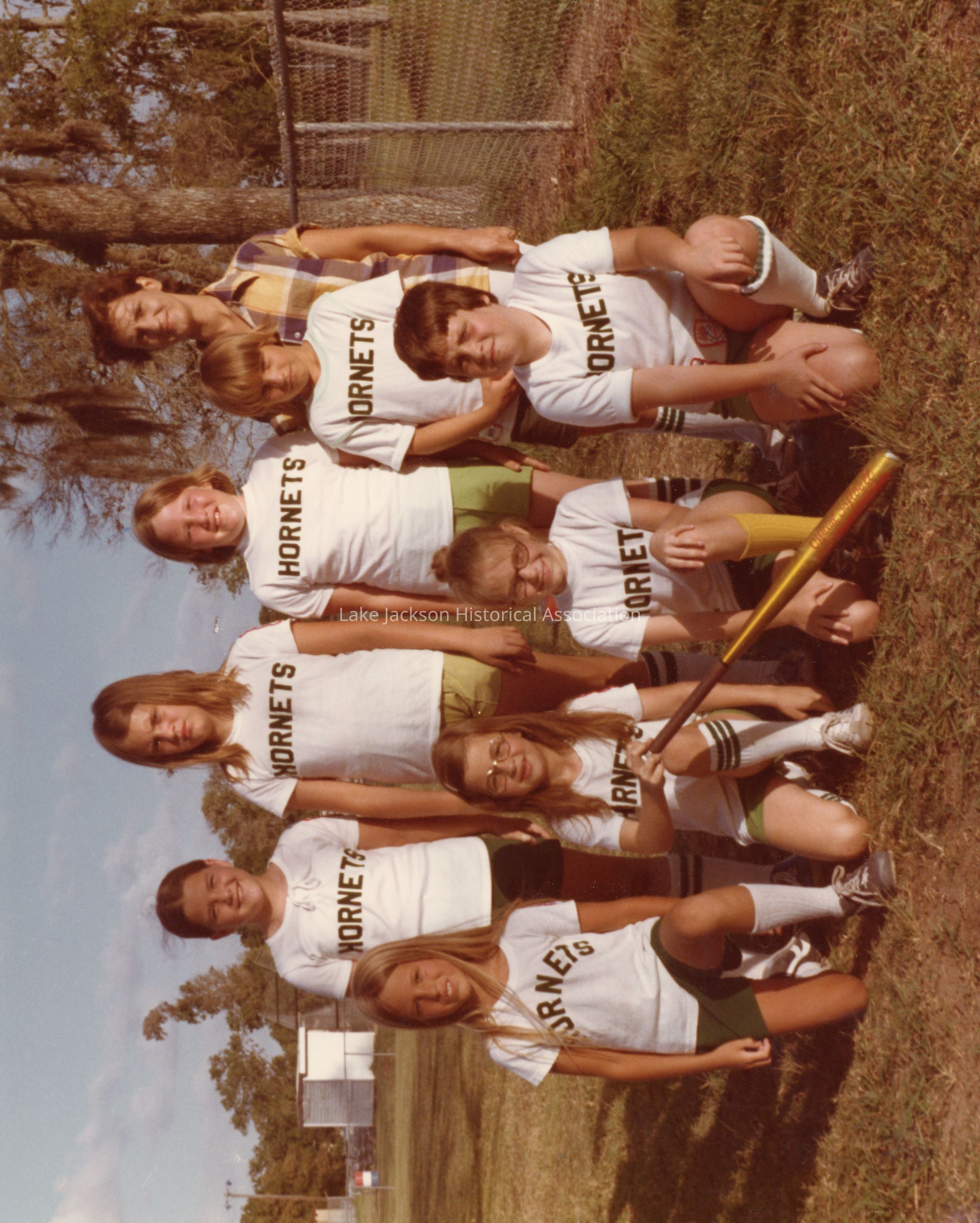 Photo of girls' softball team "The Hornets" in 1976; Coach is K. Simpson.Collection