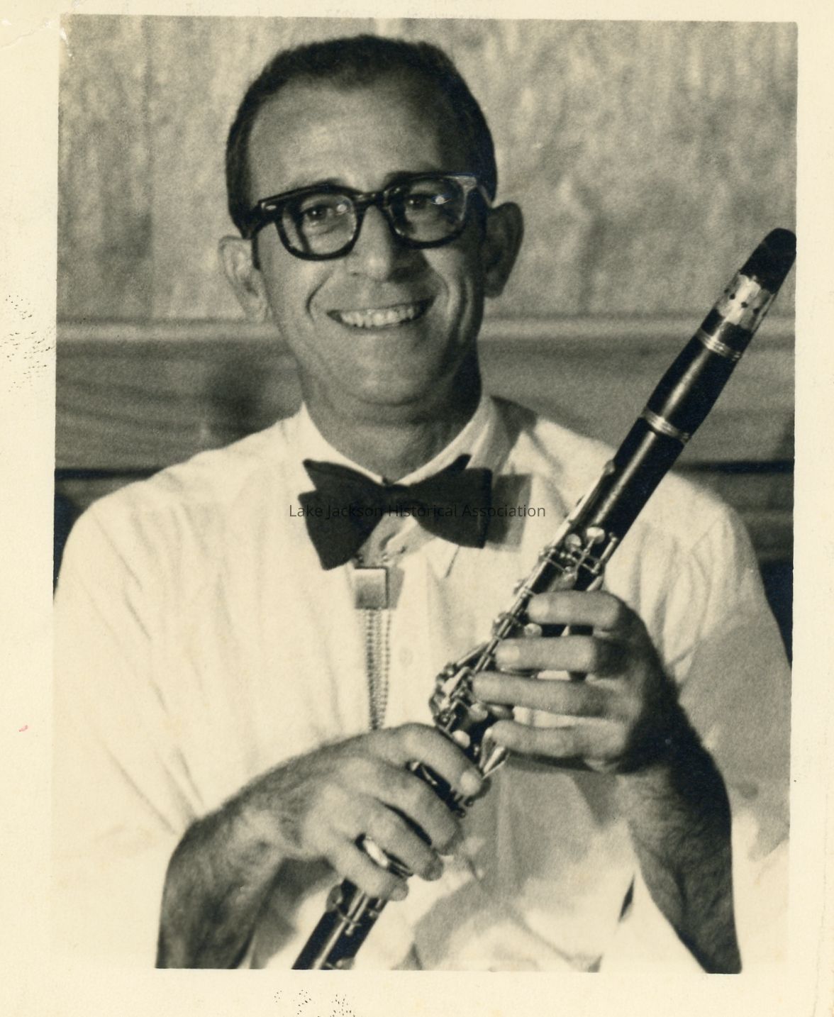 A black and white photo of Phil DiGuardi and his clarinet from the early 1950s.