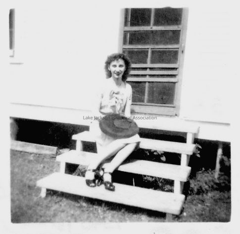 A black and white photo of Doris Mae Pessara during World War II from 1945. The original photo was taken using wartime film.
