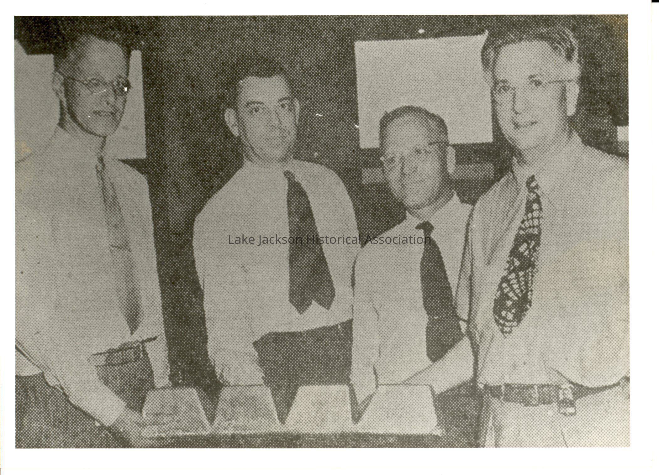 June 1942- Reps from OPM and WPM with Dr. Beutel and Willard Dow hold first magnesium "ingot" from Dow Mag. Plant