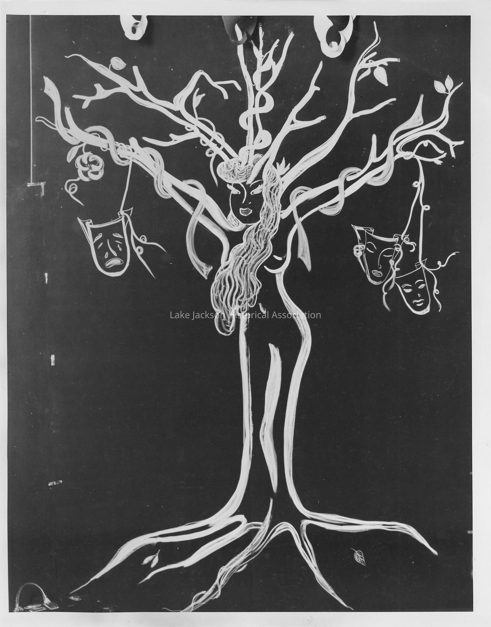 Black and white photo of the decorations at Styrene dance at Freeport Community HouseCollection