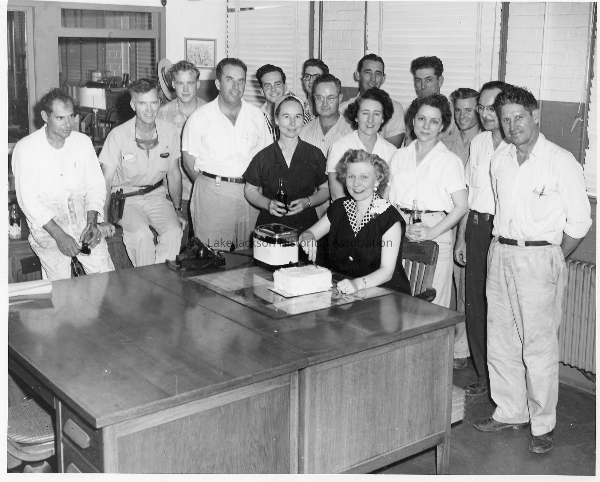 Black and white photo of Dow office featuring Joe Mitchell and Karol BoundyCollection