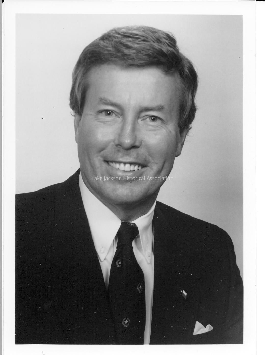 Black and white photo of J.E. "Buster" Brown District 17. Photo used in the publication of the Lake Jackson News and the Brazorian NewsCollection