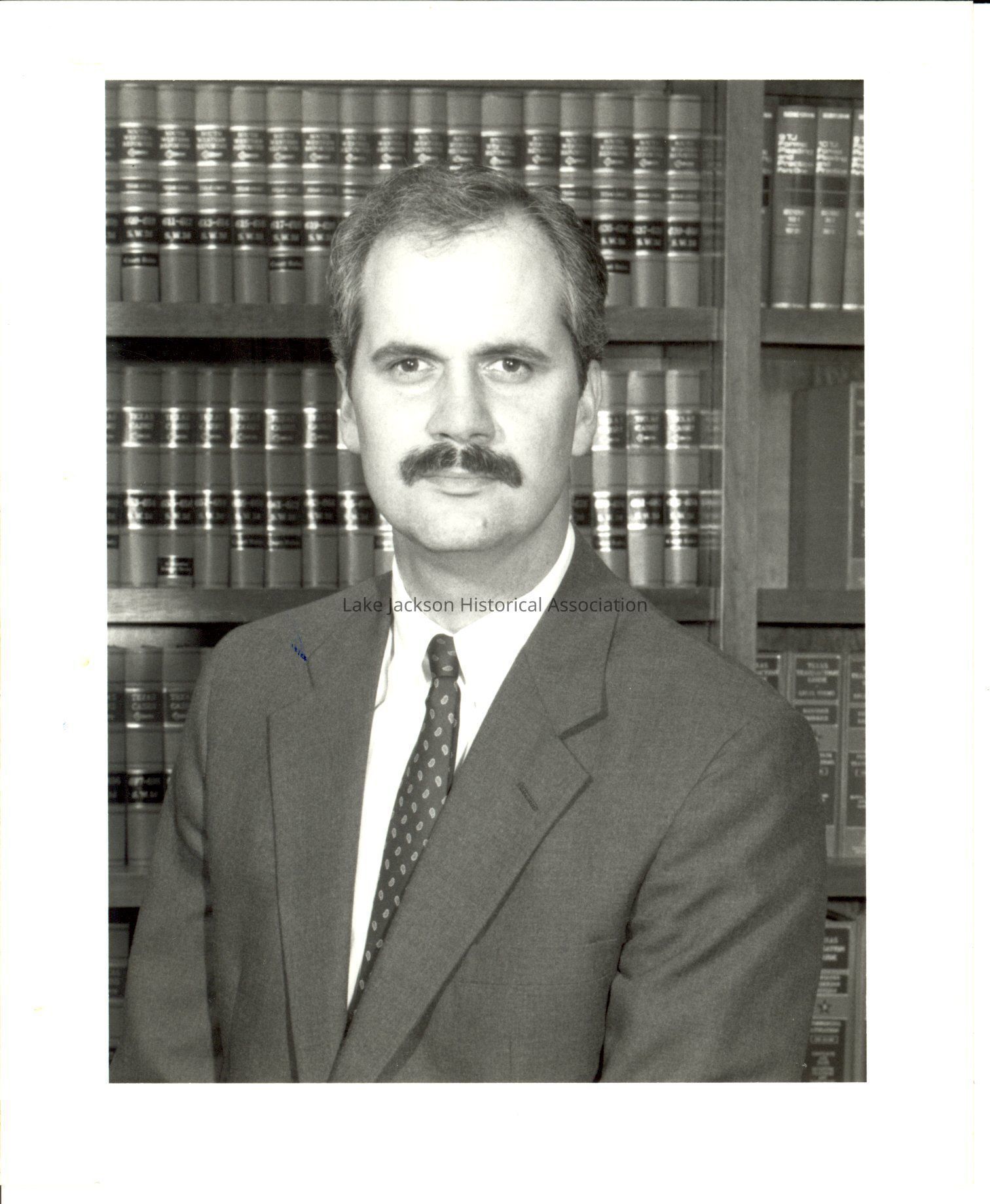 Black and white photo of Matthew B. Edquist in front of bookcase