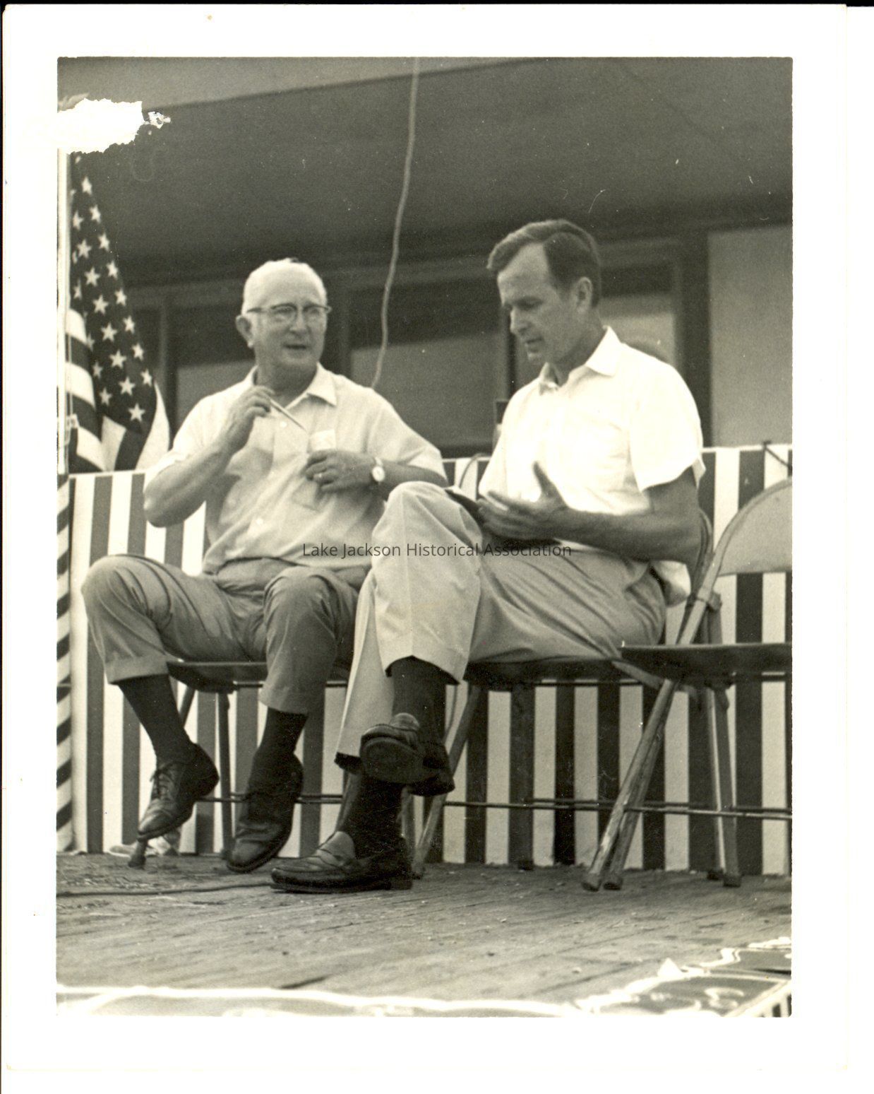 Black and white photo of Shep McKeithen with Mr. George Bush Sr. Mr. George Bush later served as President of the United States from 1988-1992.Collection
