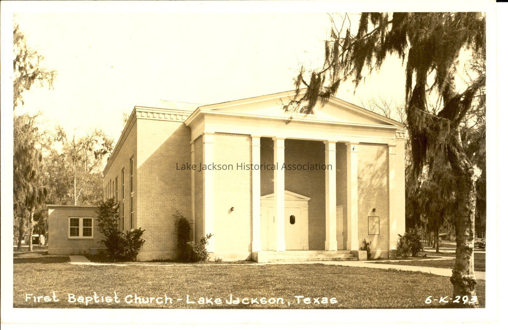1- Black and white postcard of the First Baptist Church in Lake JacksonCollection