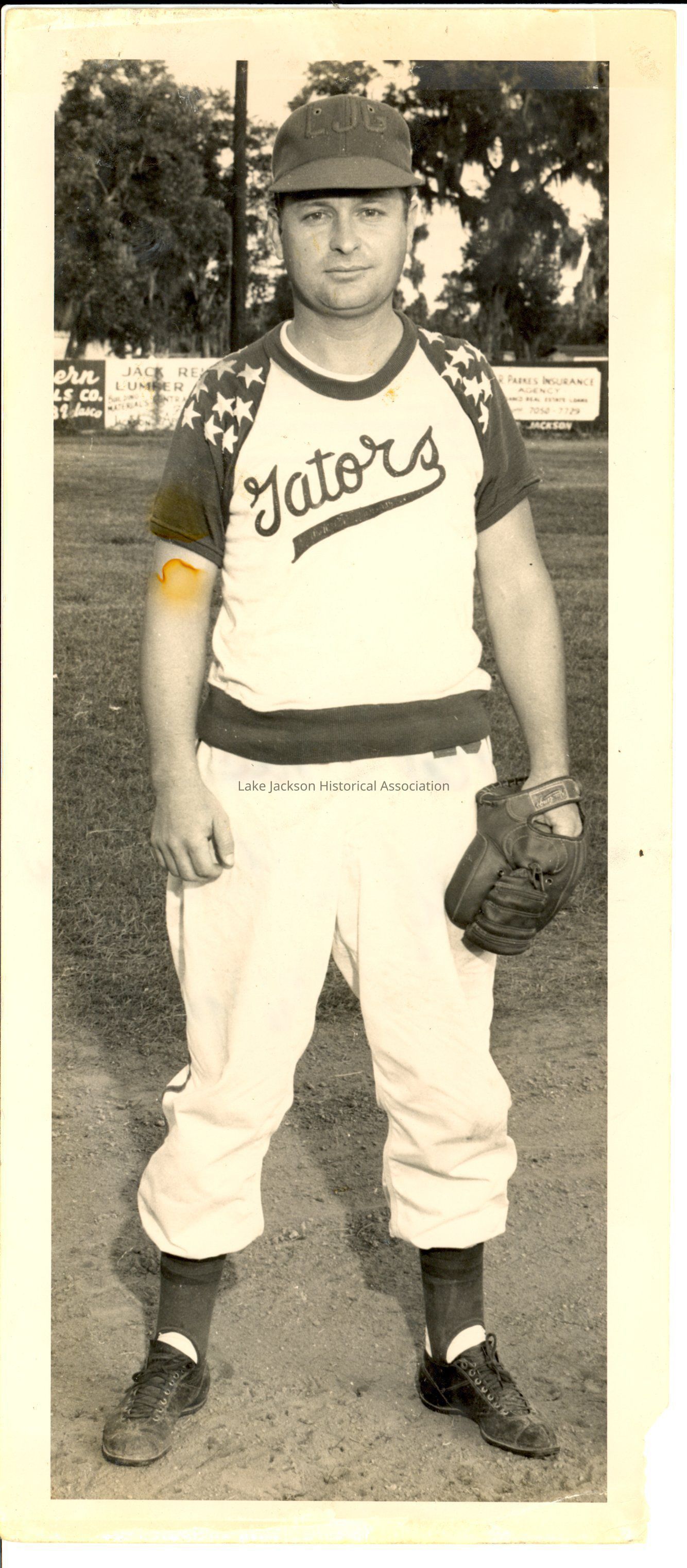 1- Black and white photo of Les Tolbirt, Lake Jackson Gator. Stamped on the back is "The Dow Chemical Company/ Texas Division - Freeport, Texas/ Photograph/ Neg. No. 151418/ Date Taken Jul 1952/ By V. A. Slagle".Collection