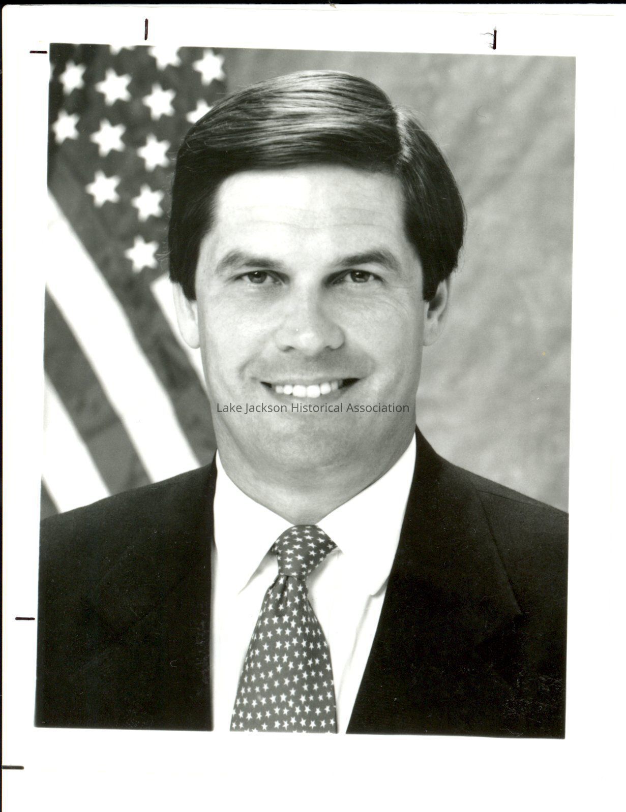 Black and white photo of Jack Fields with U.S. Flag in left backgroundCollection