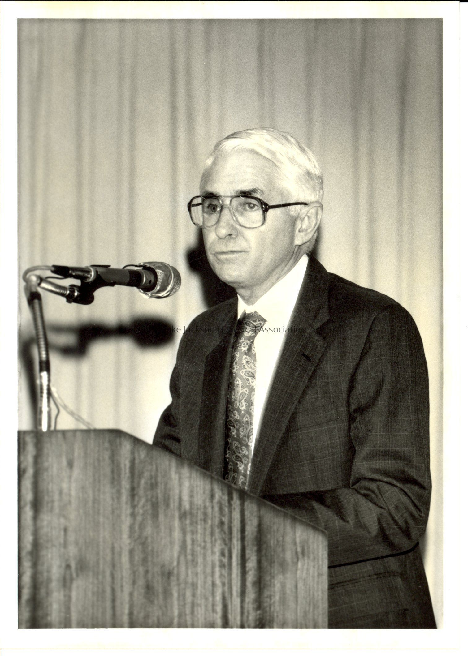 Black and white photo of Robert W. Gallant at podium