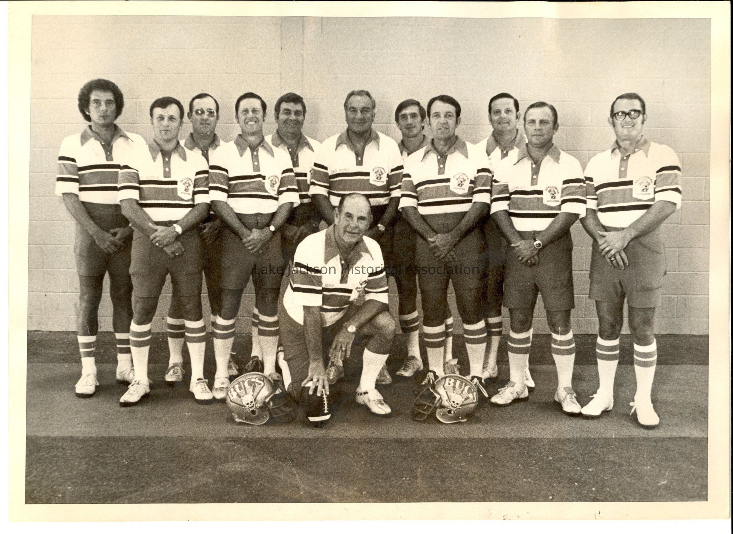 L-R Phil Reynolds, Jacky Mayfield, Jim Author, Jimmy Dodd, Johnny Matthew, Phil Koonce, Mark Broaddus, Jerald Loyd, Bill Poland, Ralph Moore, Trainer Day, and on one knee Coach L Z BryanCollection