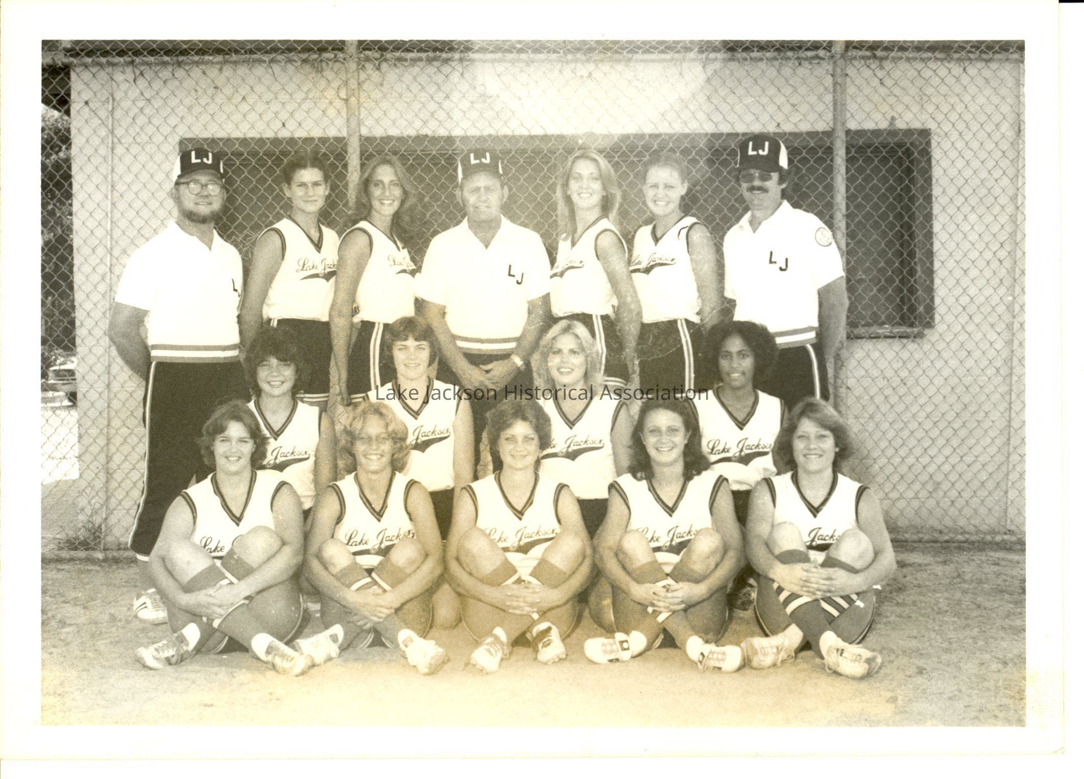 Black and white photo of Lake Jackson girls' softball or baseball teamCollection