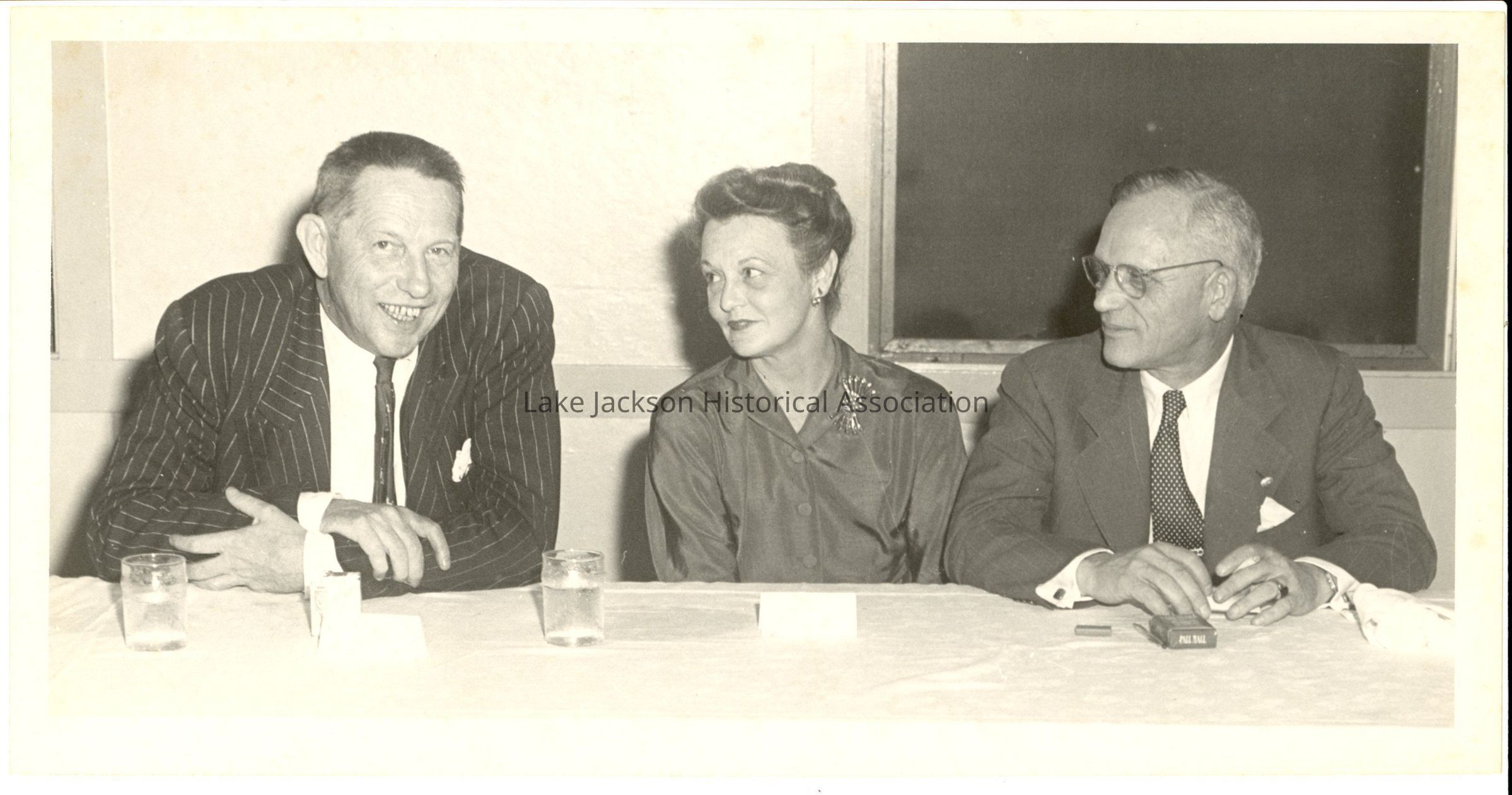 1- Black and white photo od Dr. And Mrs. Beutel sitting at a dinner table with another man.Collection