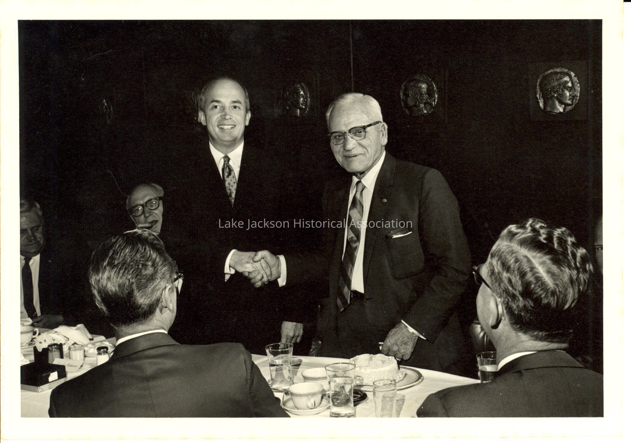 1- Black and white photo of Dr. Beutel shaking hands with another man at a dinner party.Collection