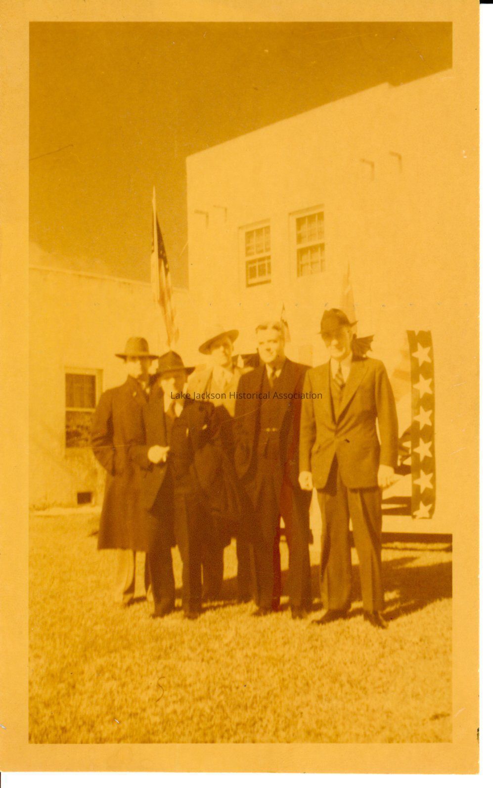 1- Color photo of Dr. Beutel with a group of men outside in front of a building.Collection