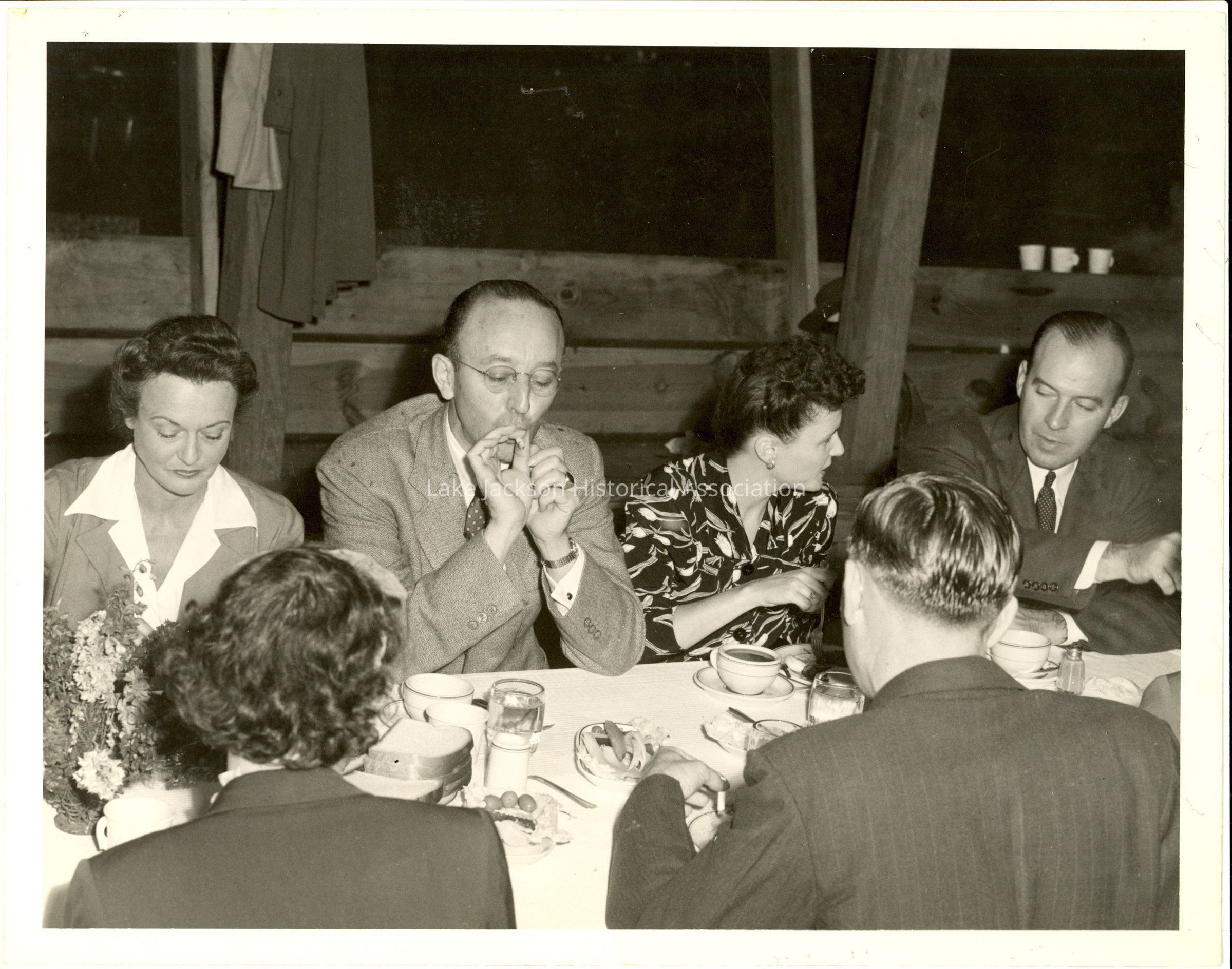 1- Black and white photo of people at a dinner party. Looks like it could be held at the Dow pavilion.Collection