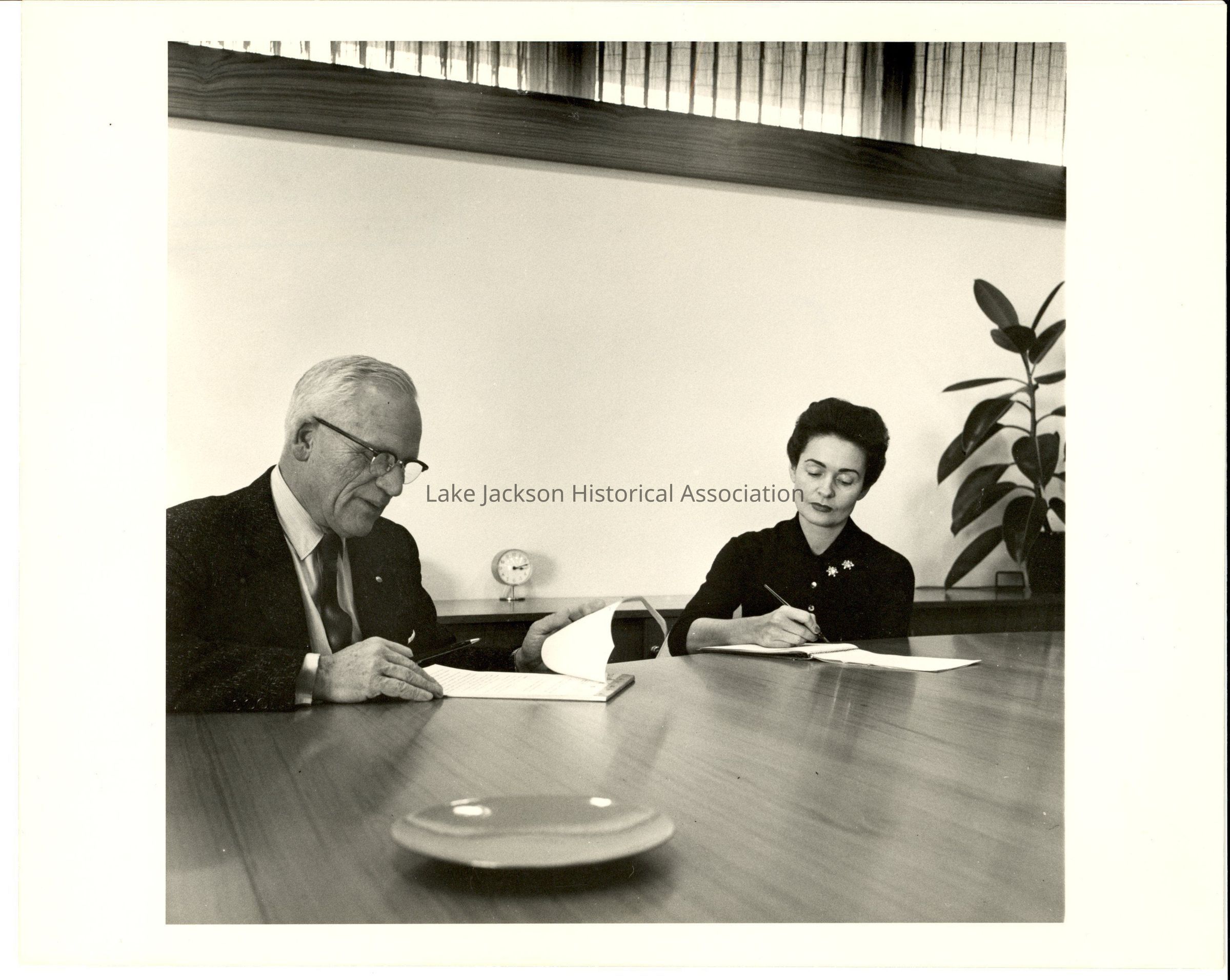 1- Black and white photo of Dr. Beutel and his secretary at his desk.Collection