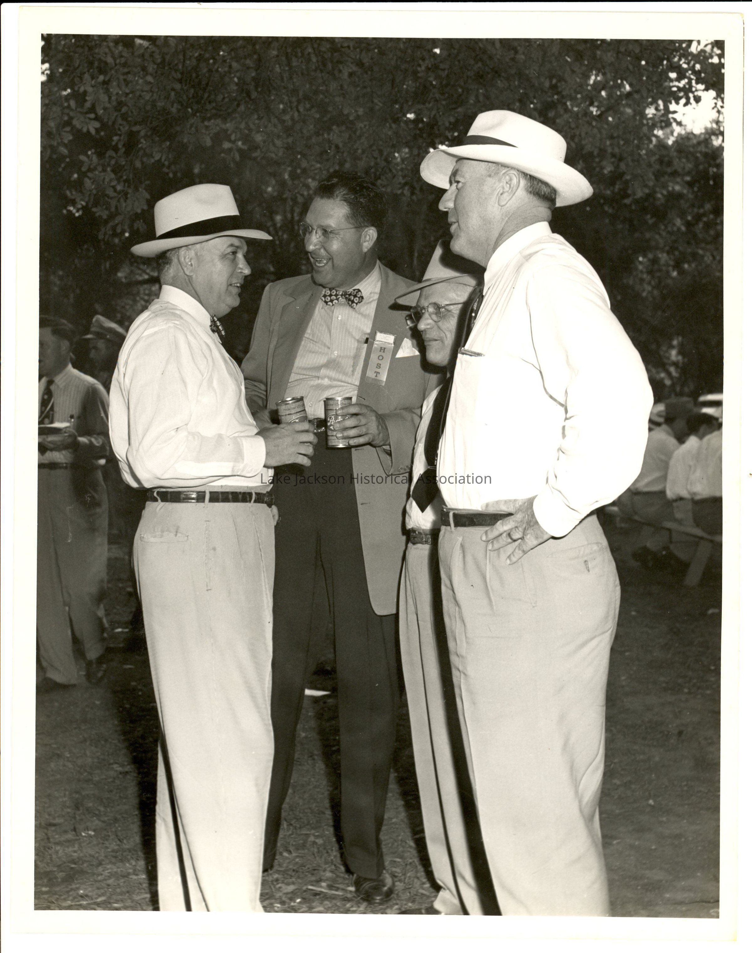 1- Black and white photo of Dr. Beutel talking to three other men outdoors.Collection