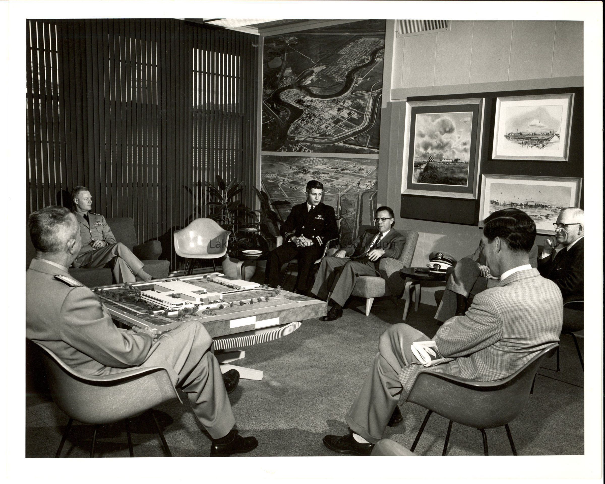 1- Black and white photo of Dr. Beutel in his office with other businessmen.Collection