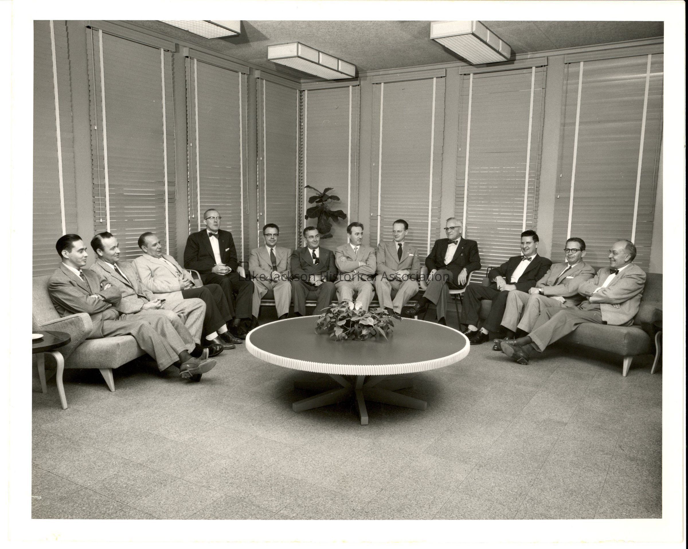 1- Black and white photo of Dr. Beutel in his office with a group of businessmen.Collection