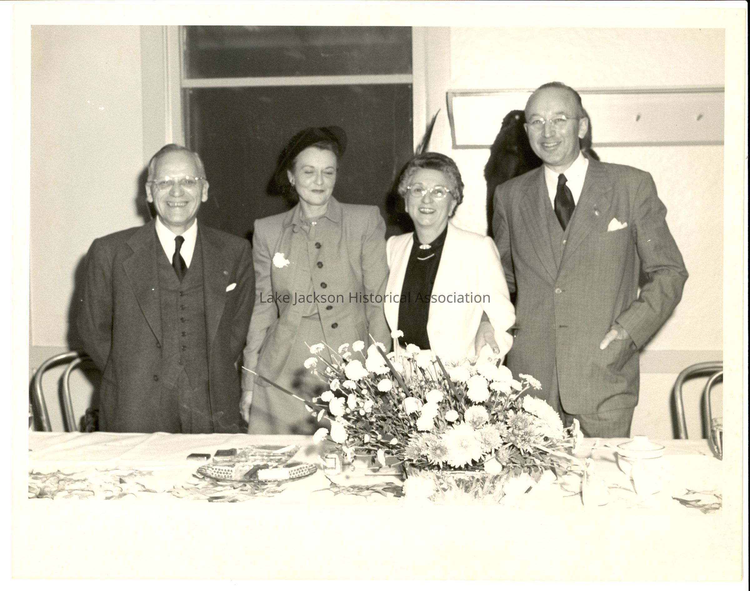 Black and white photo of Dr. and Mrs. Belle Beutel and another unknown couple at a banquet.Collection