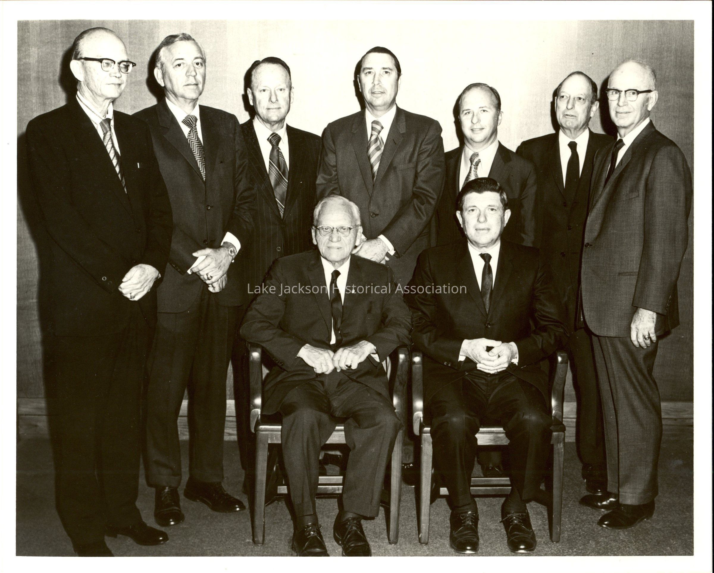 Black and white photo of Dr. Beutel and 8 other unknown men in a group photo.Collection