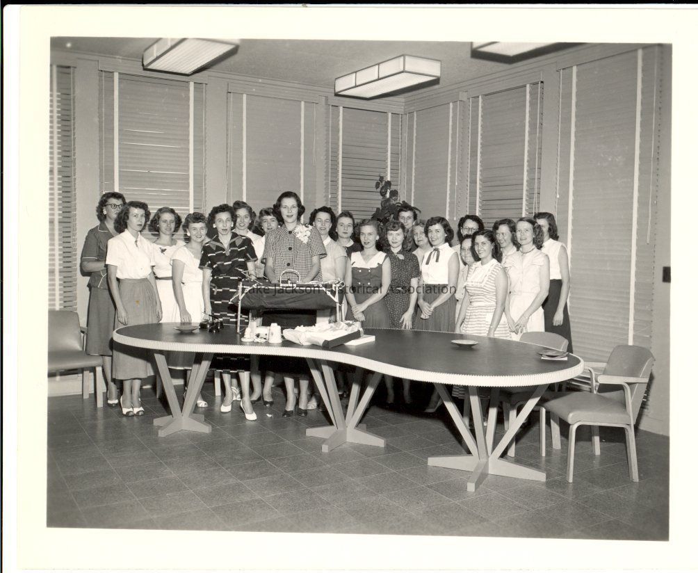 Black and white photo of a group of women in Dr. Beutel's office.Collection