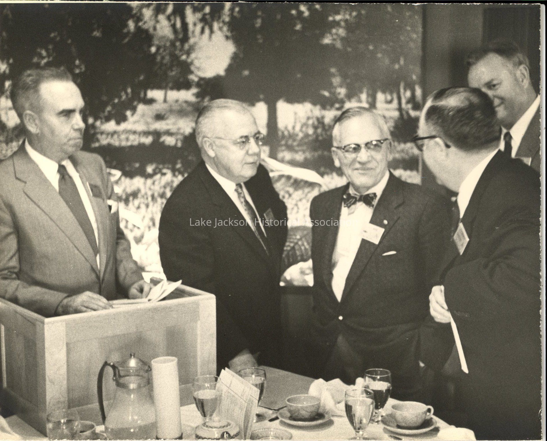 Black and white photo of Dr. Beutel and four unknown men at a gathering.Collection
