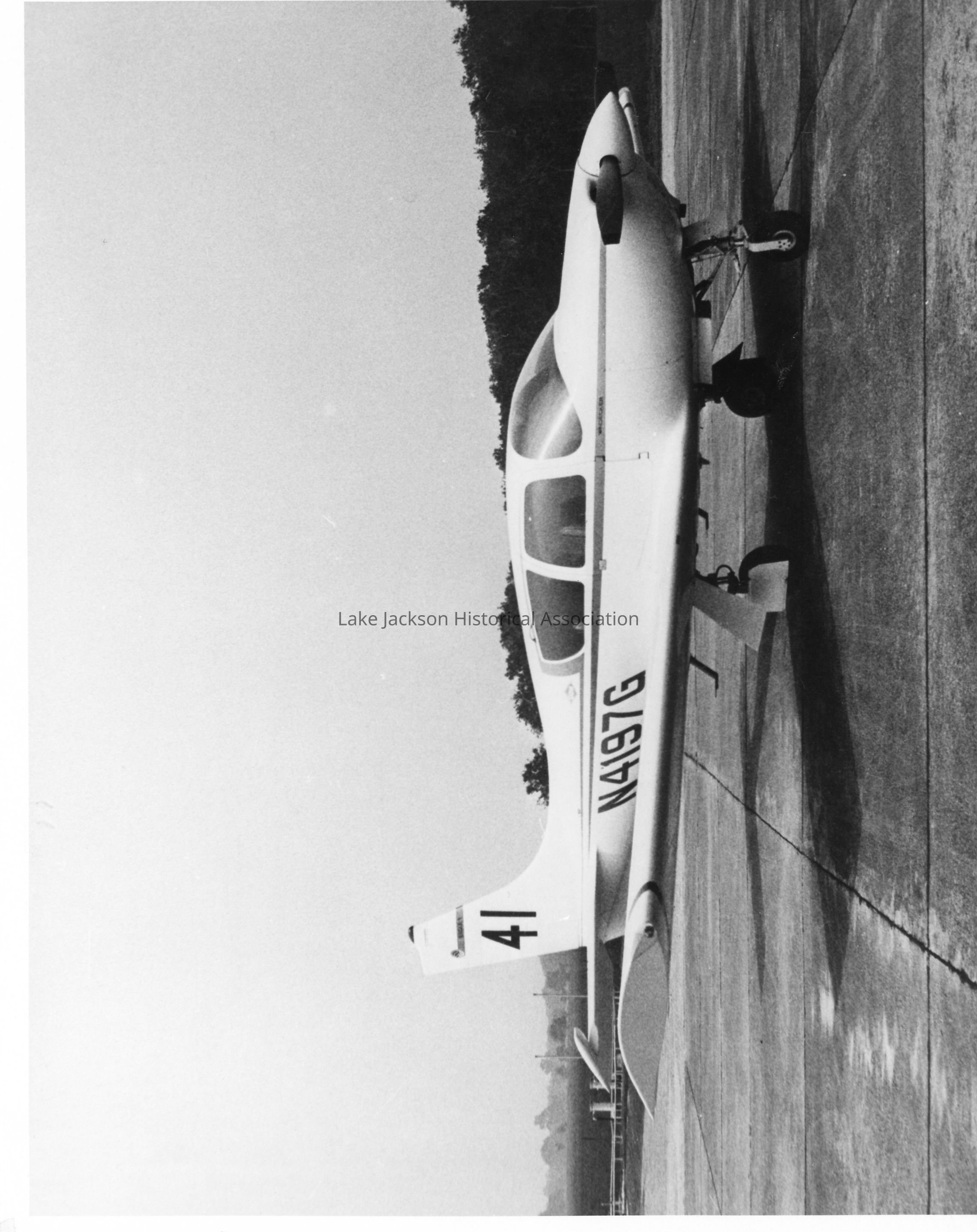 Black and white photo of the Windecker Eagle (N4197G), the one flew by Stephanie Vickery and Billie Joyce Wyche in the Powder Puff Derby.Collection