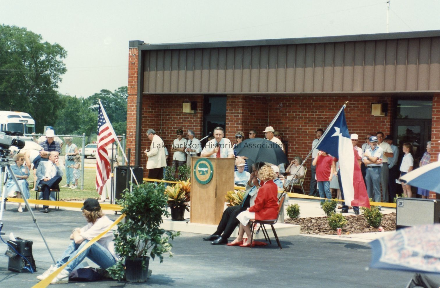 Color photo of Mac McClure speaking at the donation ceremony.Collection