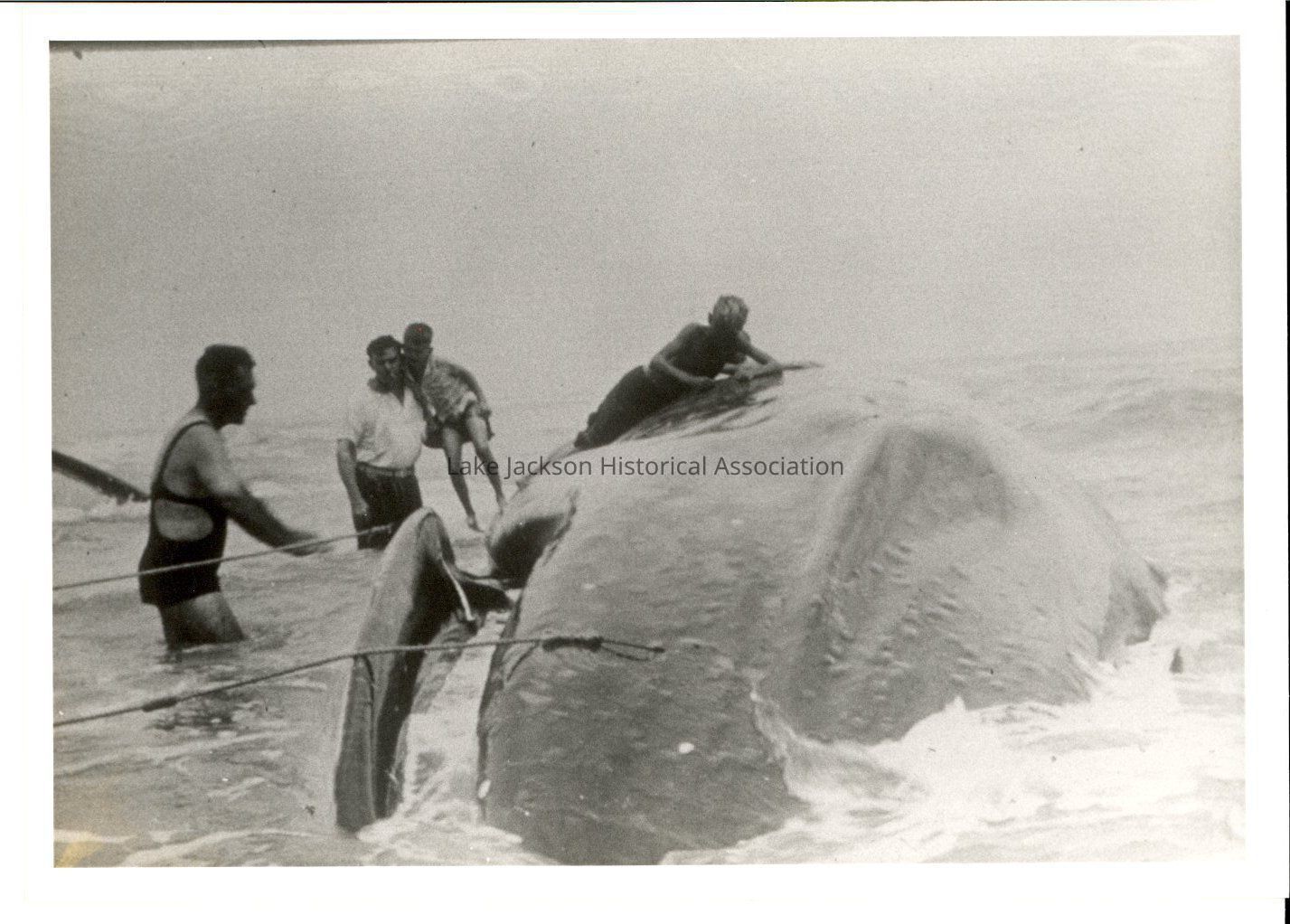 B & W Photo of large whale washed ashore at Surfside in 1941Collection